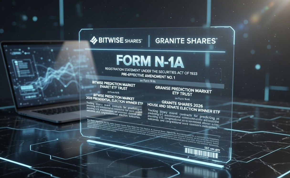 Bitwise & GraniteShares file SEC prospectuses for PredictionShares ETFs tracking 2028 presidential and 2026 Senate/House party wins via binary event contracts.