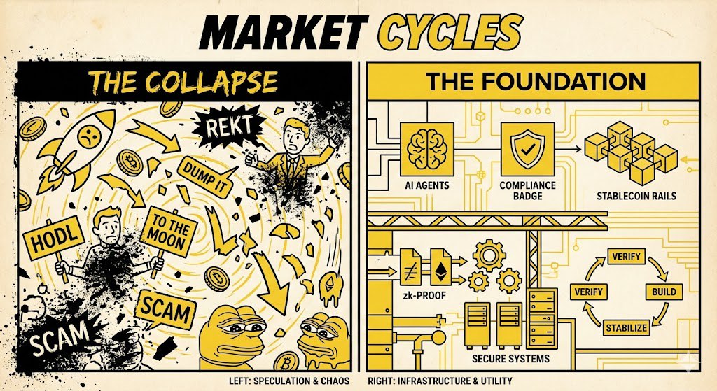 Post-crash crypto is maturing fast. AI agents, privacy-first chains, stablecoins, RWAs, zkVMs, and institutional treasuries are replacing hype with infrastructure built for real volume and compliance.