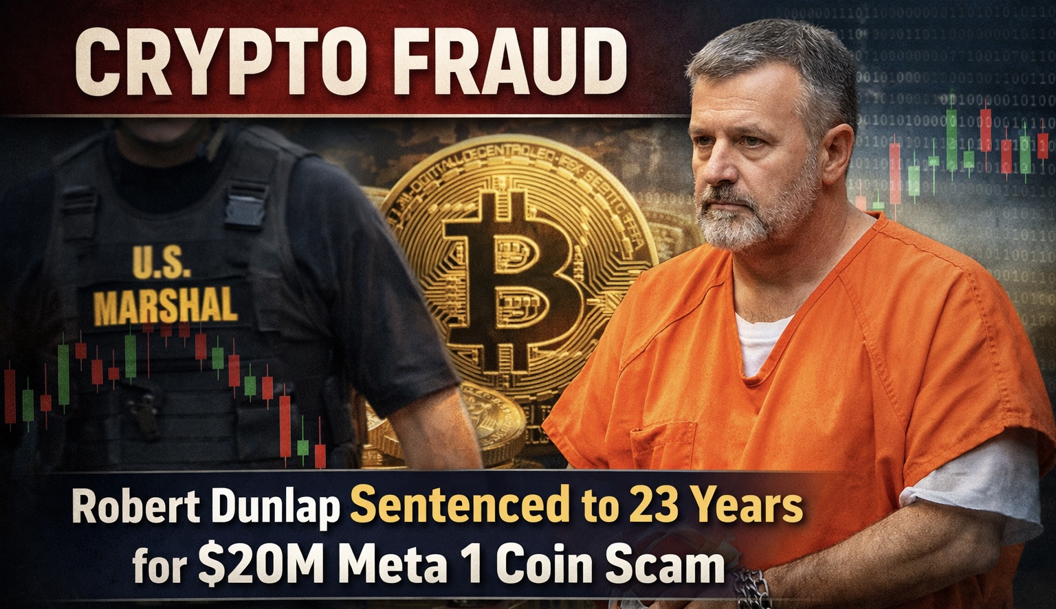 Texas man Robert Dunlap gets 23 years for $20M Meta 1 Coin crypto scam that defrauded 1,000 investors, signaling tougher US crackdown on digital asset fraud.