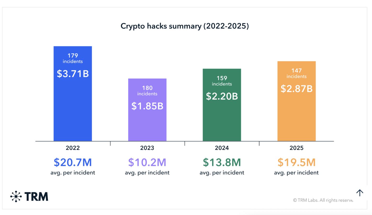The average size of crypto hacks rose to $19.5 million in 2025. Source: TRM Labs