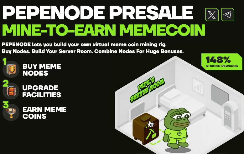 PepeNode raised roughly $2.7 million in its presale by selling an idea that sounds almost too silly to work: a meme coin you mine without ever touching a GPU. The project built a virtual mining simulator on Ethereum, wrapped it in Pepe the Frog branding, and glued on a 70% burn mechanism to reward active players.